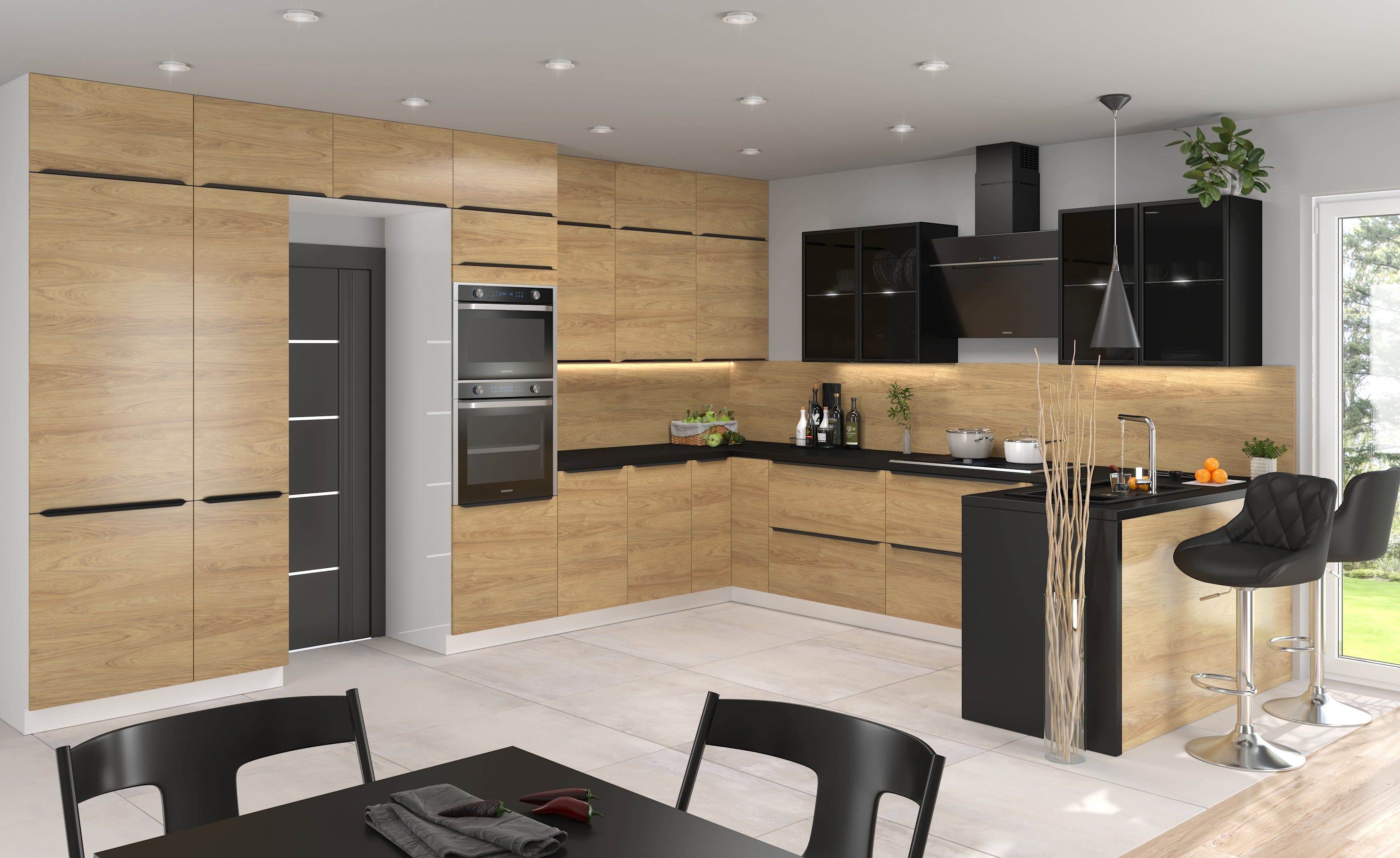 Recomendación de diseño: Combina el modelo FORST con encimeras claras o efecto piedra y detalles en negro mate para lograr una cocina moderna y acogedora con un marcado carácter natural.